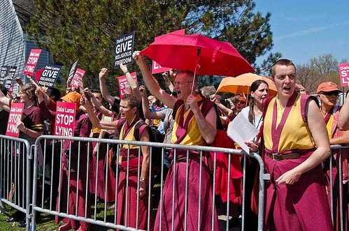 However watching the France24 contribution, that there are some shops who announce not to serve those monks I feel not comfortable either. I see this also as too radical. On the other hand every country and community has their difficulties to deal with and to accept fundamentalists and their stubborn views the more when they are involved in violence. (Prof. Thurman once named Shugden followers “the Taliban of Tibetan Buddhism”, I think this is a heavy exaggeration but it is also not completely untrue.) Because there are victims mainly on the side of Shugden opponents it may be understandable that some Tibetans overreact – although this is not nice. In the past Shugden followers boast about the deity’s (Shugden’s) power being able to kill 23 government officials. The Head of the School of Dialectics, a 70 year old monk, close to the Dalai Lama, living near his place and an opponent of Shugden, has been killed – according to Indian Police (Interpol has issued wanted notices) he and two of his students were killed by Shugden followers. Is it not understandable that in such a difficult time, maybe Tibet’s darkest age, some Tibetans overreact?
