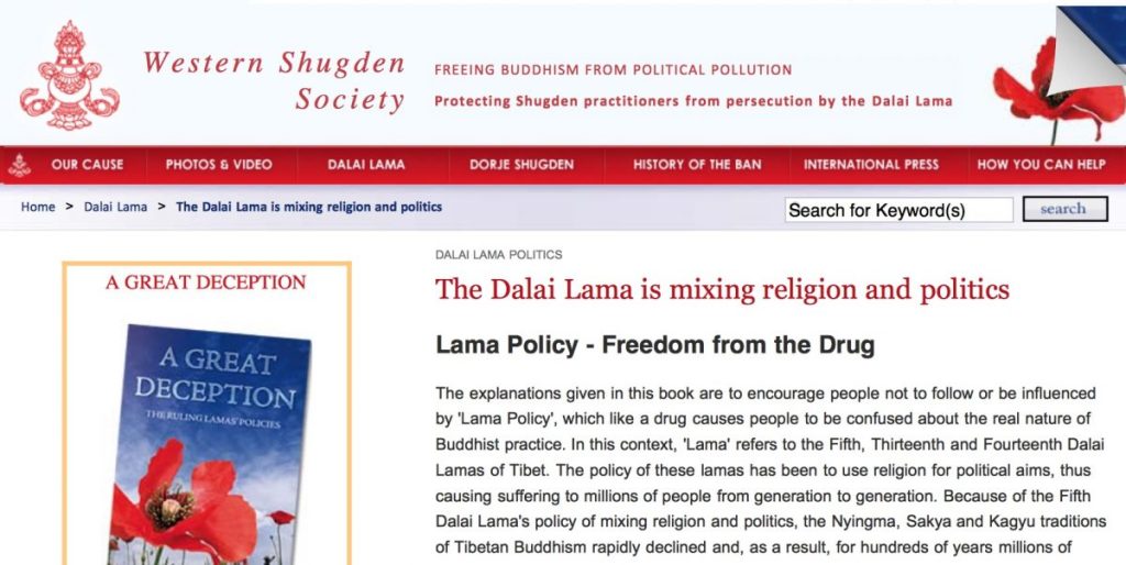 The Western Shugden Society (WSS) has recently carried a poorly researched essay titled “The Lama Policy: Freedom from the Drug” without cited sources, only a vague claim that the “paper” is based on a “collection of Tibetan books”. The essay seeks to undermine the institution of the Dalai Lamas and the Ganden Phodrang, rather than address specific concerns about the Shugden issue. The WSS has crossed yet another line in its deluded propaganda war – it has made evident that no longer is it campaigning just about the Shugden issue, its aim has expanded to include discrediting the TGIE, HH Dalai Lama, and anyone who dares support him.