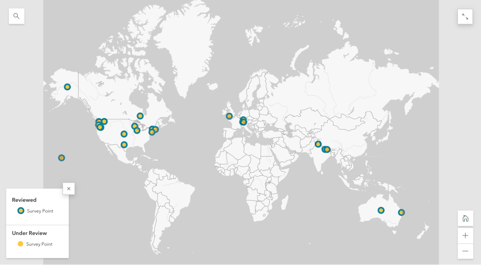 Screenshot of the “Healing Our Sanghas Map” generated by anonymous contributions.